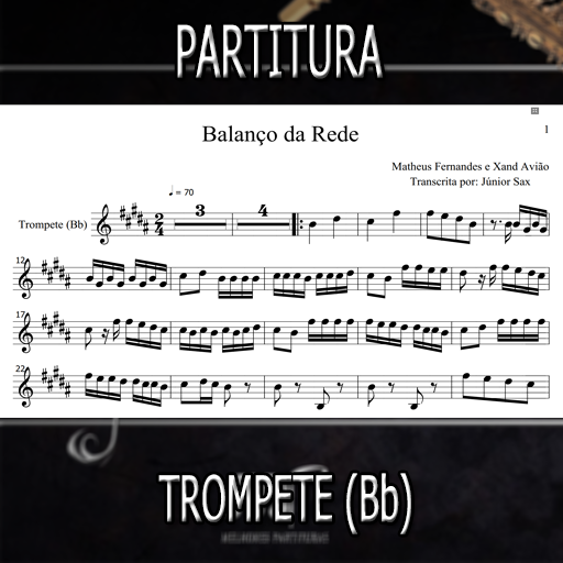 Partitura da música Balanço da Rede (Matheus Fernandes e Xand Avião) para Trompete (Bb). Se você deseja executar esta música é só investir apenas este valorzinho mínimo. Esta partitura está de acordo com a tonalidade original, porém, se você desejar em outra tonalidade, basta entrar em contato conosco e enviar um comprovante de compra. O atendimento é altamente rápido e estamos disponíveis das 7:00 as 18:00 horas.