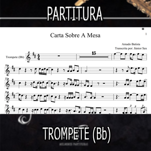Veja o vídeo-partitura da música Carta Sobre A Mesa (Amado Batista) para Trompete (Bb) em nosso canal do YouTube clicando aqui. E temos mais de 100 vídeo-partituras disponíveis no canal dos gêneros musicais (MPB, Forró, Sertanejo, Rock nacional, Internacionais, Pagode, Samba, Axé, Gospel, Religiosas, dentre outros).