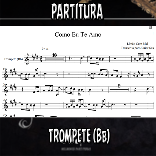 Partitura da música Como Eu Te Amo (Limão Com Mel) para Trompete (Bb). Se você deseja executar esta música é só investir apenas este valorzinho mínimo. Esta partitura está de acordo com a tonalidade original, porém, se você desejar em outra tonalidade, basta entrar em contato conosco e enviar um comprovante de compra. O atendimento é altamente rápido e estamos disponíveis das 7:00 as 18:00 horas.