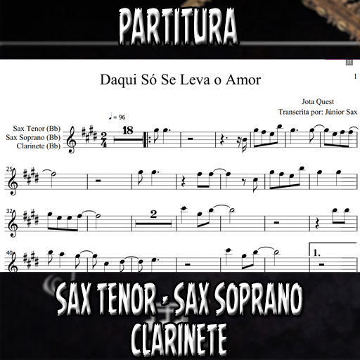 Partitura da música Daqui só se leva o amor (Jota Quest) para Sax Tenor, Sax Soprano e Clarinete (Bb). Se você deseja executar esta música é só investir apenas este valorzinho mínimo. Esta partitura está de acordo com a tonalidade original, porém, se você desejar em outra tonalidade, basta entrar em contato conosco e enviar um comprovante de compra. O atendimento é altamente rápido e estamos disponíveis das 7:00 as 18:00 horas.