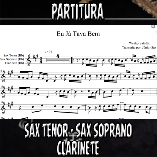 Partitura solada da música Eu Já Tava Bem (Wesley Safadão) para Sax Tenor, Sax Soprano e Clarinete (Bb). Se você deseja executar esta música é só investir apenas este valorzinho mínimo. Esta partitura está de acordo com a tonalidade original, porém, se você desejar em outra tonalidade, basta entrar em contato conosco e enviar um comprovante de compra. O atendimento é altamente rápido e estamos disponíveis das 7:00 as 18:00 horas.