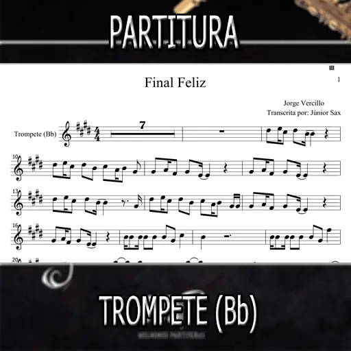 Veja o vídeo-partitura da música Final Feliz (Jorge Vercillo) para Trompete (Bb) em nosso canal do YouTube clicando aqui. E temos mais de 100 vídeo-partituras disponíveis no canal dos gêneros musicais (MPB, Forró, Sertanejo, Rock nacional, Internacionais, Pagode, Samba, Axé, Gospel, Religiosas, dentre outros).