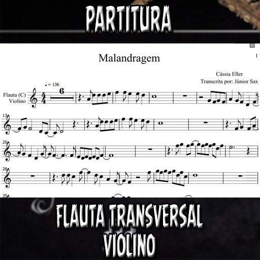 Partitura da música Malandragem (Cássia Eller) para Flauta Transversal, Violino e outros instrumenos afinados em DÓ (C). Se você deseja executar esta música é só investir apenas este valorzinho mínimo. Esta partitura está de acordo com a tonalidade original, porém, se você desejar em outra tonalidade, basta entrar em contato conosco e enviar um comprovante de compra. O atendimento é altamente rápido e estamos disponíveis das 7:00 as 18:00 horas.