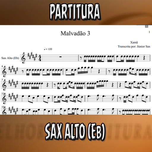 Partitura solada da música Malvadão 3 (Xamã) para Sax Alto (Eb). Se você deseja executar esta música é só investir apenas este valorzinho mínimo. Esta partitura está de acordo com a tonalidade original, porém, se você desejar em outra tonalidade, basta entrar em contato conosco e enviar um comprovante de compra. O atendimento é altamente rápido e estamos disponíveis das 7:00 as 18:00 horas.