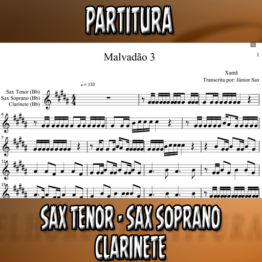 Partitura solada da música Malvadão 3 (Xamã) para Sax Tenor, Sax Soprano e Clarinete (Bb). Se você deseja executar esta música é só investir apenas este valorzinho mínimo. Esta partitura está de acordo com a tonalidade original, porém, se você desejar em outra tonalidade, basta entrar em contato conosco e enviar um comprovante de compra. O atendimento é altamente rápido e estamos disponíveis das 7:00 as 18:00 horas.