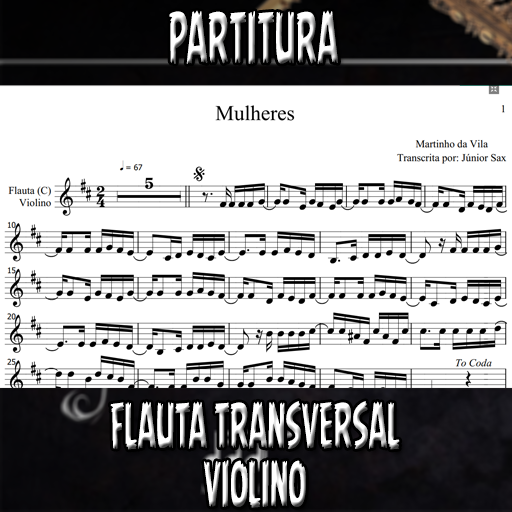 Partitura da música Mulheres (Martinho da Vila) para Flauta Transversal, Violino e outros instrumenos afinados em DÓ (C). Se você deseja executar esta música é só investir apenas este valorzinho mínimo. Esta partitura está de acordo com a tonalidade original, porém, se você desejar em outra tonalidade, basta entrar em contato conosco e enviar um comprovante de compra. O atendimento é altamente rápido e estamos disponíveis das 7:00 as 18:00 horas.