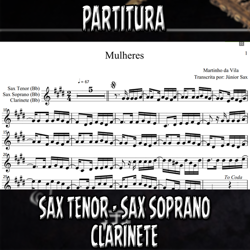 Partitura da música Mulheres (Martinho da Vila) para Sax Tenor, Sax Soprano e Clarinete (Bb). Se você deseja executar esta música é só investir apenas este valorzinho mínimo. Esta partitura está de acordo com a tonalidade original, porém, se você desejar em outra tonalidade, basta entrar em contato conosco e enviar um comprovante de compra. O atendimento é altamente rápido e estamos disponíveis das 7:00 as 18:00 horas.