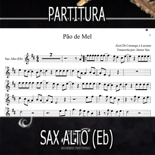 Veja o vídeo-partitura da música Pão de Mel (Zezé Di Camargo e Luciano) para Sax Alto (Eb) em nosso canal do YouTube clicando aqui. E temos mais de 100 vídeo-partituras disponíveis no canal dos gêneros musicais (MPB, Forró, Sertanejo, Rock nacional, Internacionais, Pagode, Samba, Axé, Gospel, Religiosas, dentre outros).