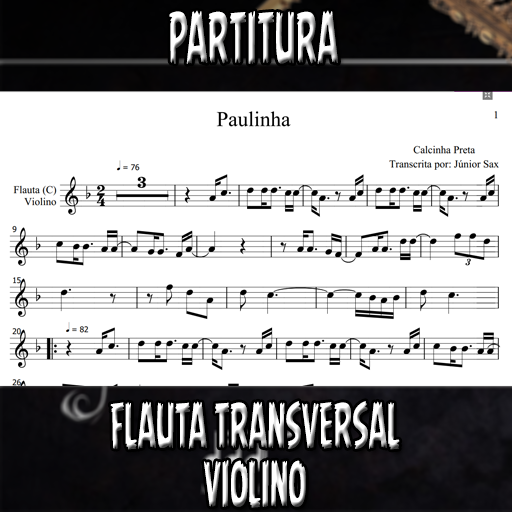 Partitura solada da música Paulinha (Calcinha Preta) para Flauta Transversal, Violino e outros instrumenos afinados em DÓ (C). Se você deseja executar esta música é só investir apenas este valorzinho mínimo. Esta partitura está de acordo com a tonalidade original, porém, se você desejar em outra tonalidade, basta entrar em contato conosco e enviar um comprovante de compra. O atendimento é altamente rápido e estamos disponíveis das 7:00 as 18:00 horas.