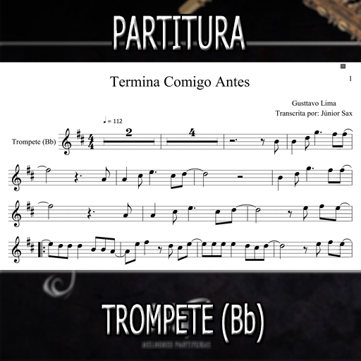 Partitura da música Termina Comigo Antes (Gusttavo Lima) para Trompete (Bb). Se você deseja executar esta música é só investir apenas este valorzinho mínimo. Esta partitura está de acordo com a tonalidade original, porém, se você desejar em outra tonalidade, basta entrar em contato conosco e enviar um comprovante de compra. O atendimento é altamente rápido e estamos disponíveis das 7:00 as 18:00 horas.